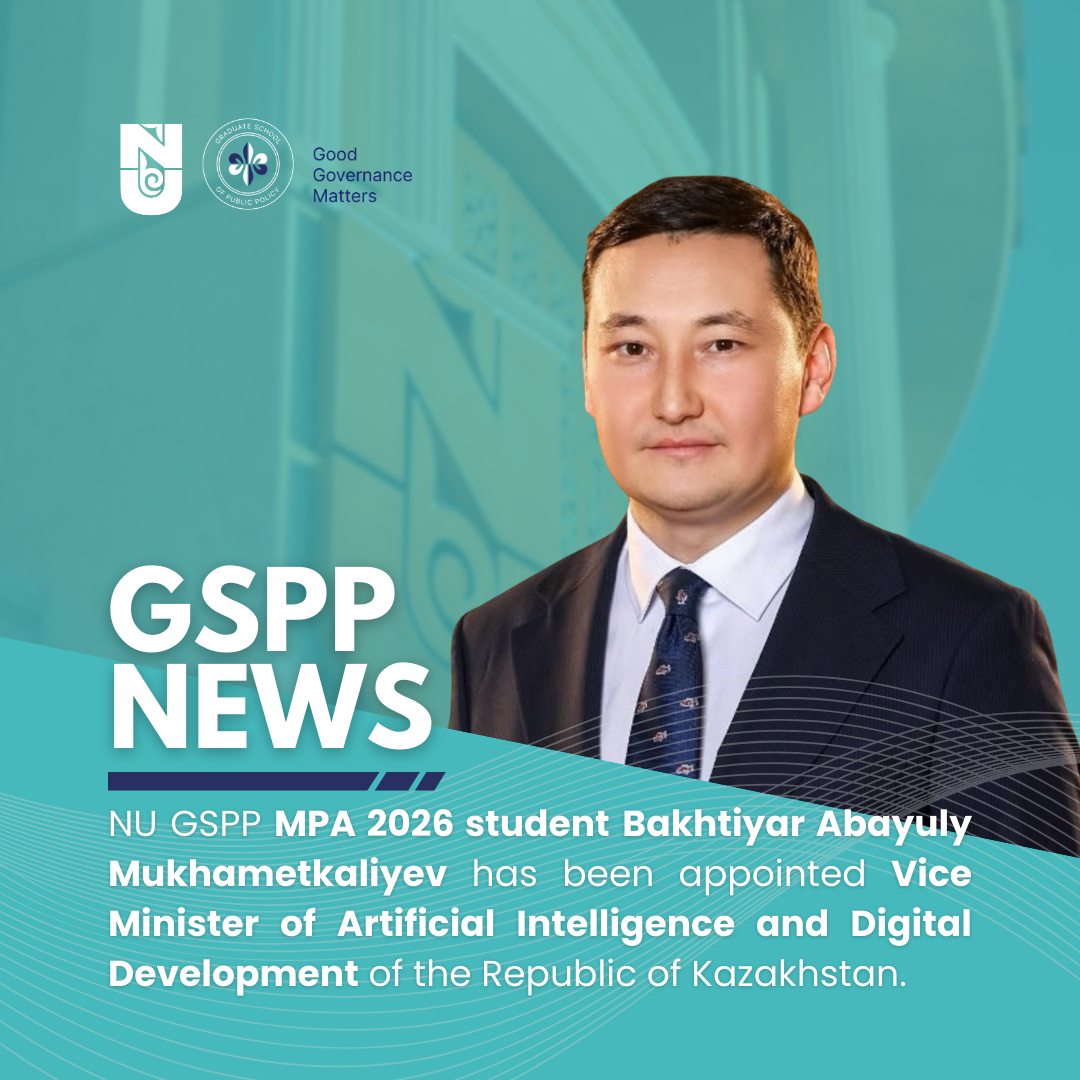 НУ Жоғары Мемлекеттік Саясат Мектебінің MPA 2026 студенті Мұхаметқалиев Бахтияр Абайұлы Қазақстан Республикасының жасанды интеллект және цифрлық даму вице-министрі болып тағайындалды.